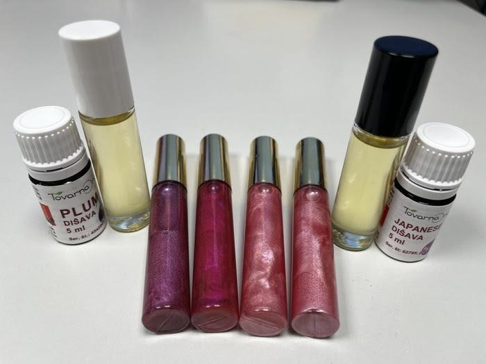 7. Še tekočo prelijemo v pripravljeno embalažo. Mi smo uporabili prozorno brezzračno embalažo 50 ml in 100 ml.